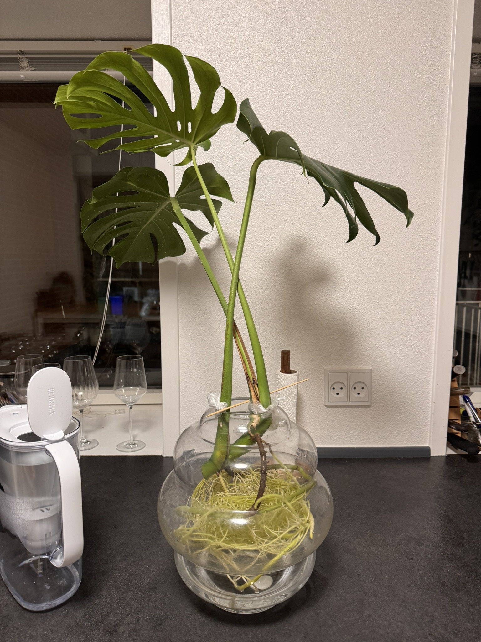 If you want to start over or just share a plant, water propagation is very straightforward. I took a cutting back in June 2025 to see how it would develop.